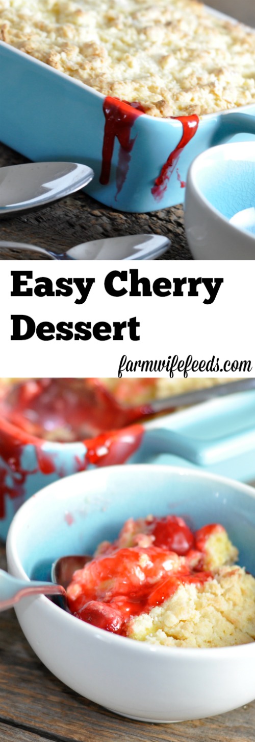 I love sweets and this Easy Cherry Dessert is one of my all time favorites. I mean with ‘easy’ and ‘dessert’ in the title how can you go wrong? The baking time/waiting time is longer on this then the prep time and a whole lot harder!