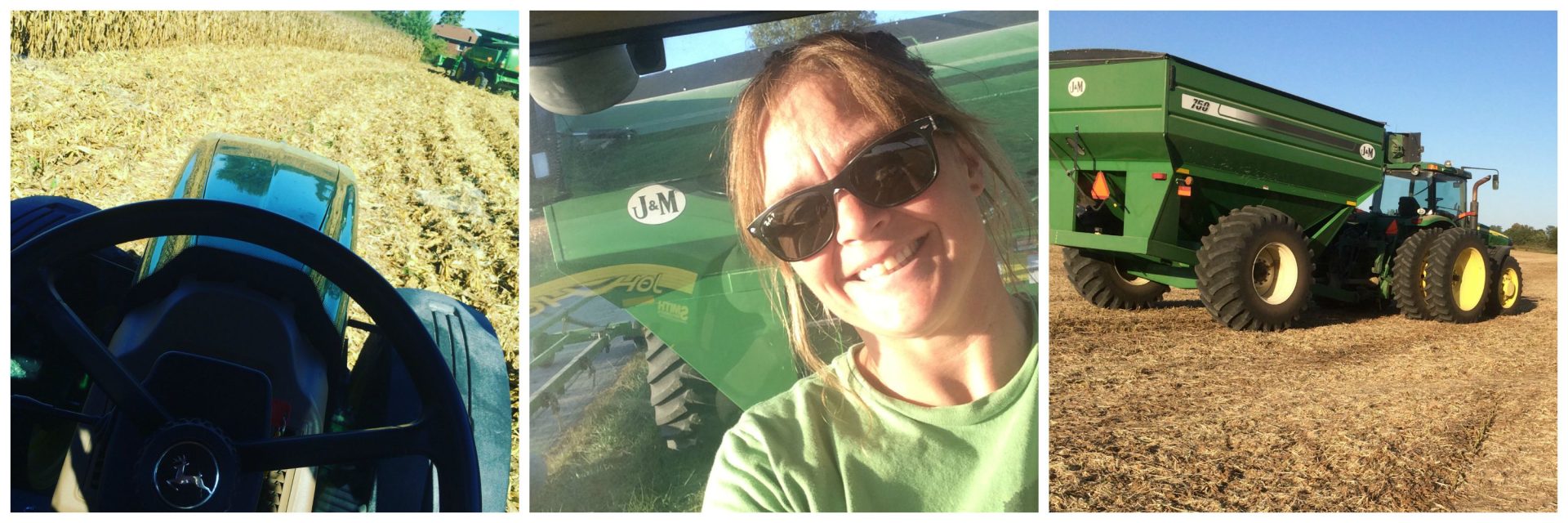 My job in the fall and honestly my favorite job on the farm is running the grain cart! Catching the corn or soybeans on the move from the combine then filling semi’s and singing along to the radio in the middle of a field is pure happiness to me!