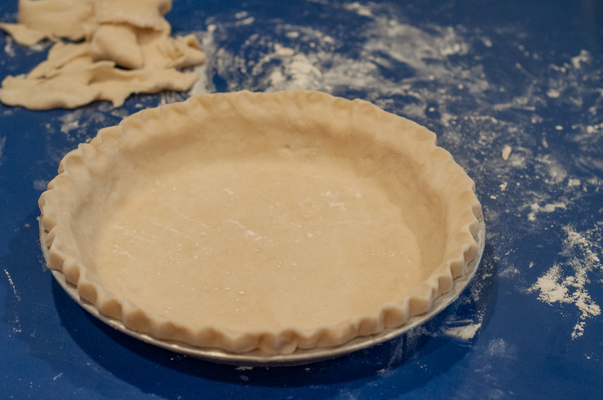 If you’re looking for a real-deal, no-nonsense crust recipe, you’ll be very happy with this one. I used it for a lemon meringue filling, but I think it would be just as good with a quiche/savory filling. I did bake it at 400 degrees for 10 minutes before filling it.