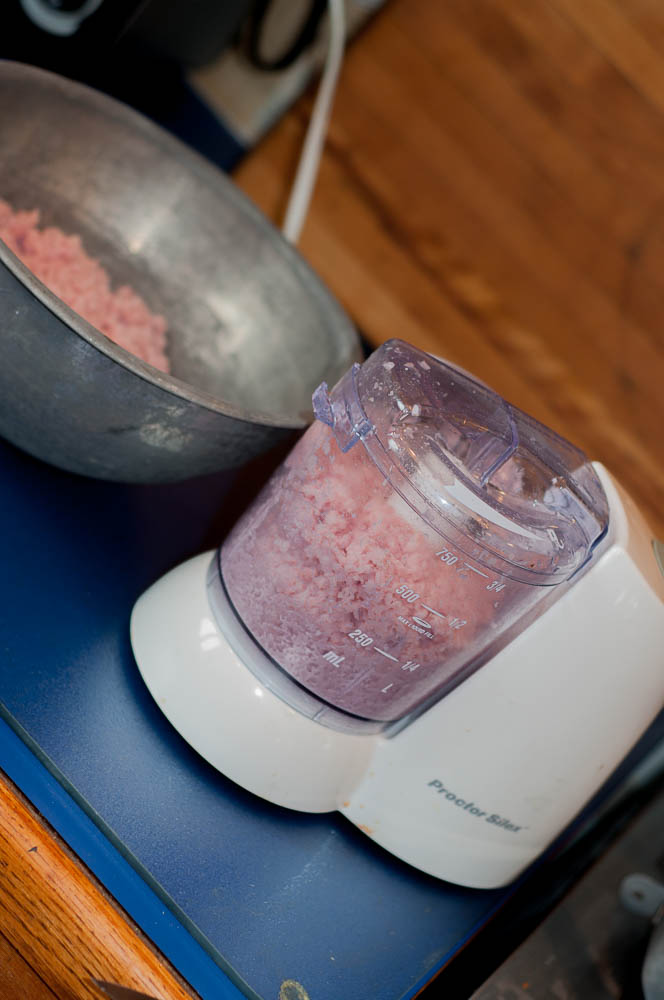 The first thing I do is run my ham and celery through the food processor. I don’t have a big food processor – mostly because I hardly ever use one and I just don’t have the storage room for a lot of kitchen appliances!