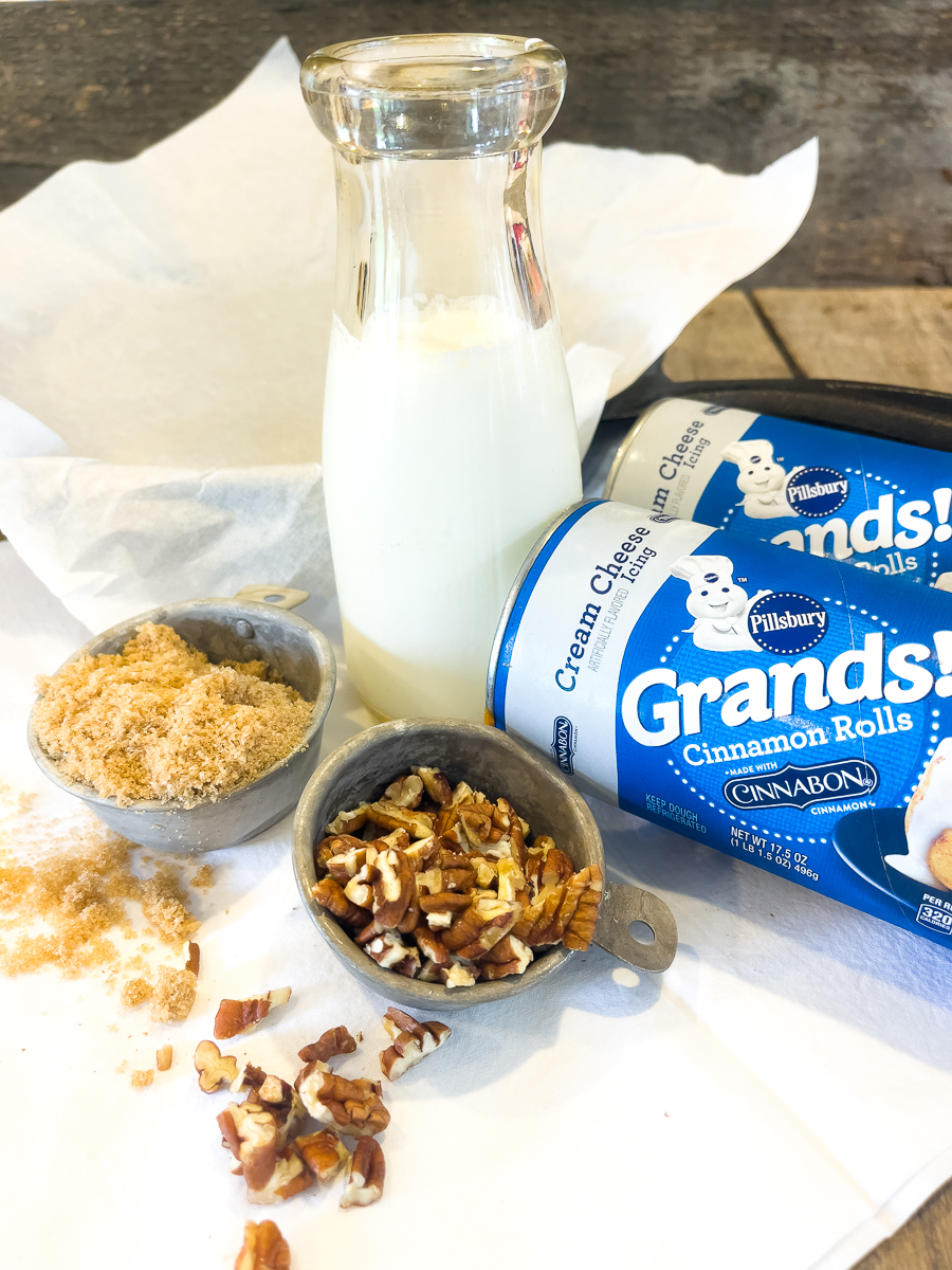 The cream melts into the rolls while they bake, keeping them soft and rich, almost like something between a cinnamon roll and a sticky bun. Add brown sugar and pecans and suddenly that simple tube of cinnamon rolls tastes like something homemade.